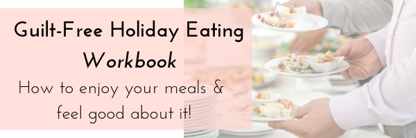 Learn to trust yourself with food and eat in a way that feels good to YOU - without the stress! Sign up to get your free workbook: "Guilt-Free Holiday Eating Workbook".